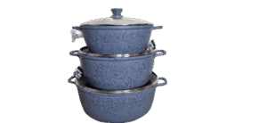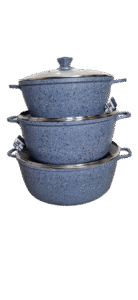 Elevate your cooking experience with this premium 3-piece diecast non-stick set, featuring a durable granite-effect coating for effortless food release and easy cleaning. Designed for superior heat distribution and long-lasting performance, it combines modern style with professional-grade functionality for every kitchen.