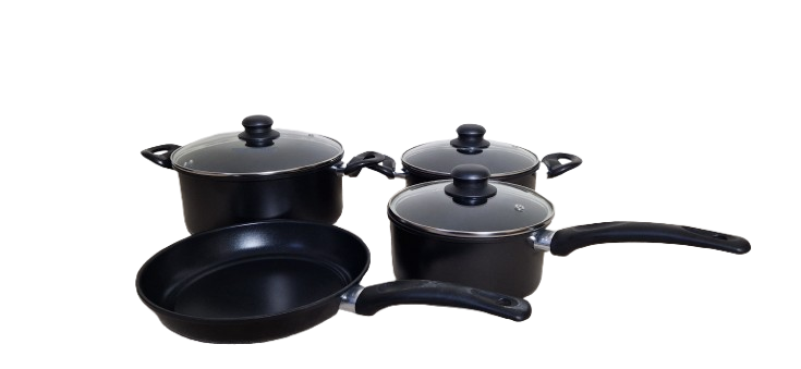 24CM Frying Pan, 18CM Saucepan with lid, 20 CM & 24CM Stockpots with lid
