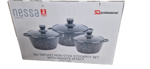 Elevate your cooking experience with this premium 3-piece diecast non-stick set, featuring a durable granite-effect coating for effortless food release and easy cleaning. Designed for superior heat distribution and long-lasting performance, it combines modern style with professional-grade functionality for every kitchen.