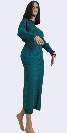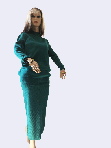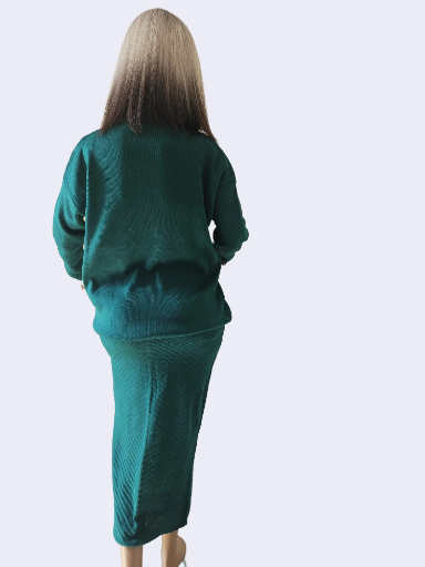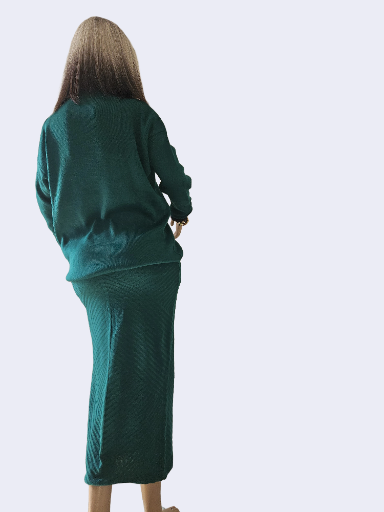 Designed for women of substance and refined taste, this dark green top and skirt set exudes sophistication and elegance.