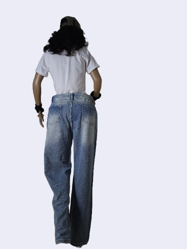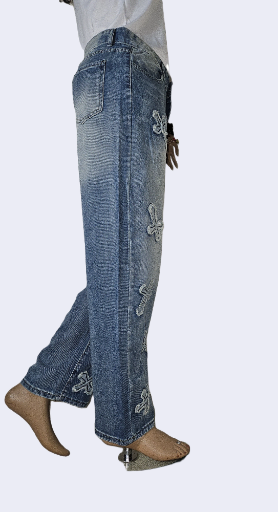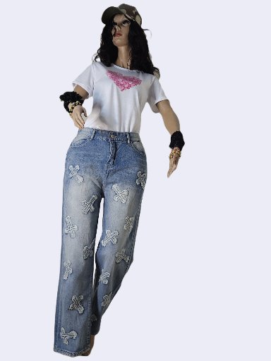 Upgrade your wardrobe with our Cross-Design Blue Jeans, crafted for the modern, sophisticated woman.